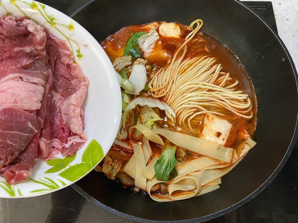 - 소고기는 삼등분 안 하고 그냥 넣은 다음 가위로 잘라줬어요.