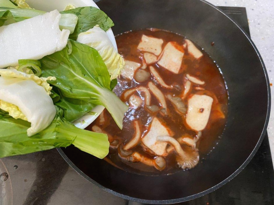 7. 나머지 청경채, 배추, 잘라두었던 포두부 투하!